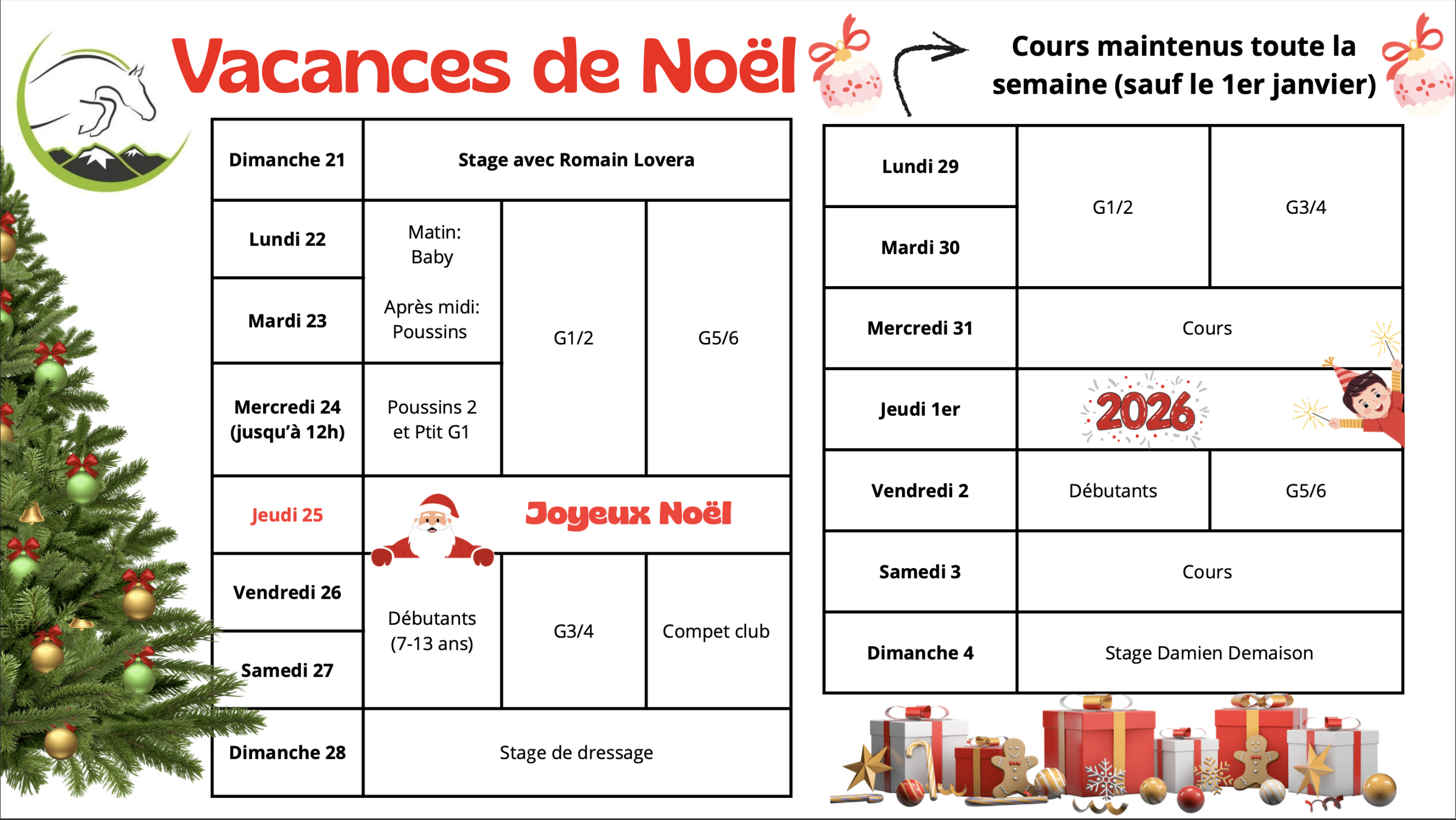 Pour les stages baby (3-4 ans ) de 9h30 à 12h.