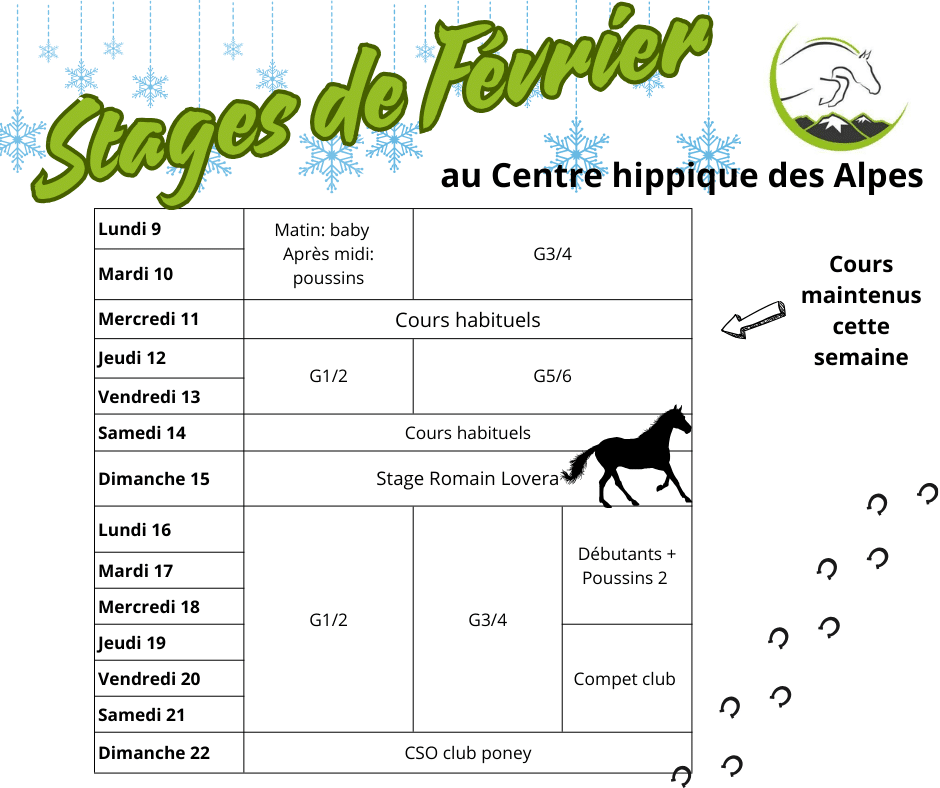 Pour les stages poussins (5-6ans) de 14h à 16h30.